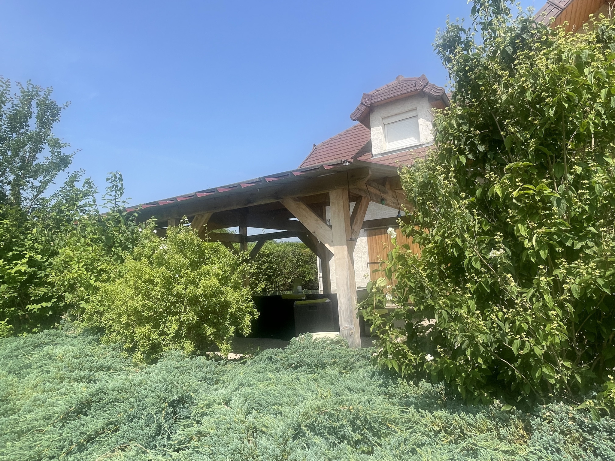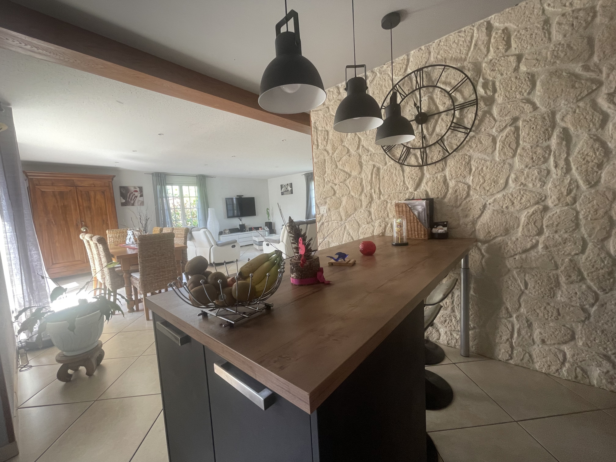 Un chemin privatif vous amènera à la propriété. La maison offre une grande pièce de vie lumineuse de 60 m² comprenant une cuisine entièrement équipée ouverte sur le séjour, donnant accès à plusieurs terrasses et à une grande pergola. Vous profiterez de 4 chambres dont une suite parentale avec salle d'eau privative, et 2 chambres disposant d'un joli balcon en bois. Une salle de bain avec double vasque et moquette de pierre, deux WC séparés, une buanderie, une cave en sous-sol, ainsi qu'un garage complètent ce bien. La piscine (8x4 m) en PVC armé soudé et son pool house invitent à la détente dans un cadre verdoyant. De nombreux rangements, un hall avec un magnifique escalier en bois réalisé par un artisan, ainsi qu'un système de chauffage par pompe à chaleur et des panneaux photovoltaïques assurent confort et économies d'énergie.