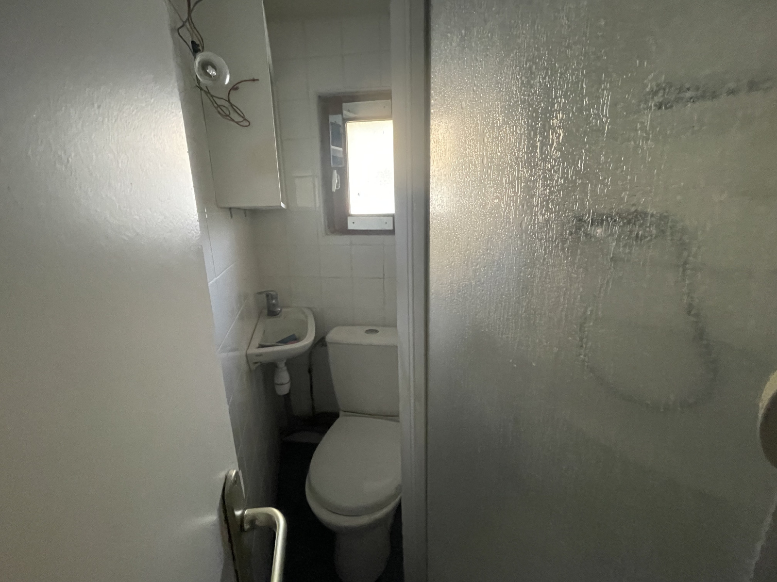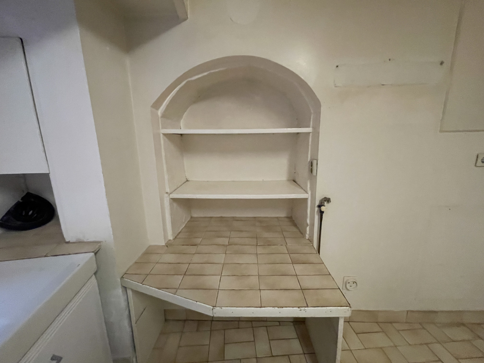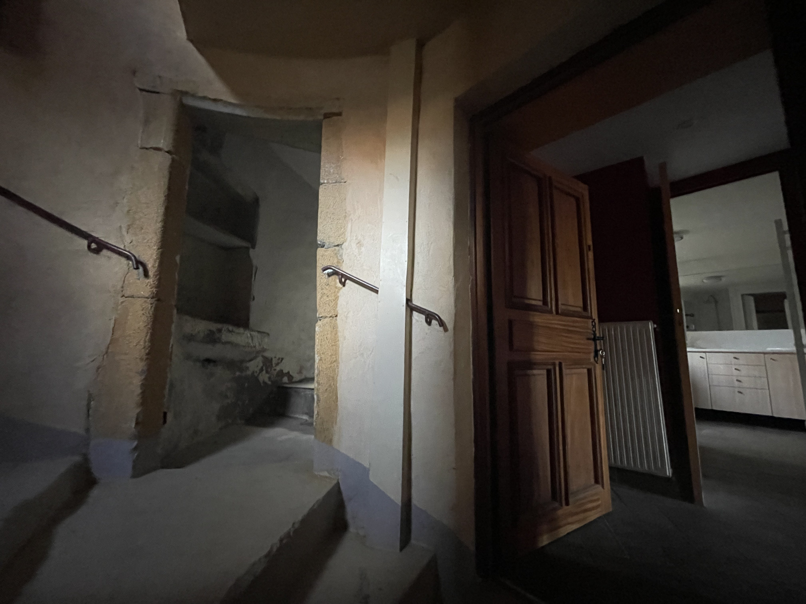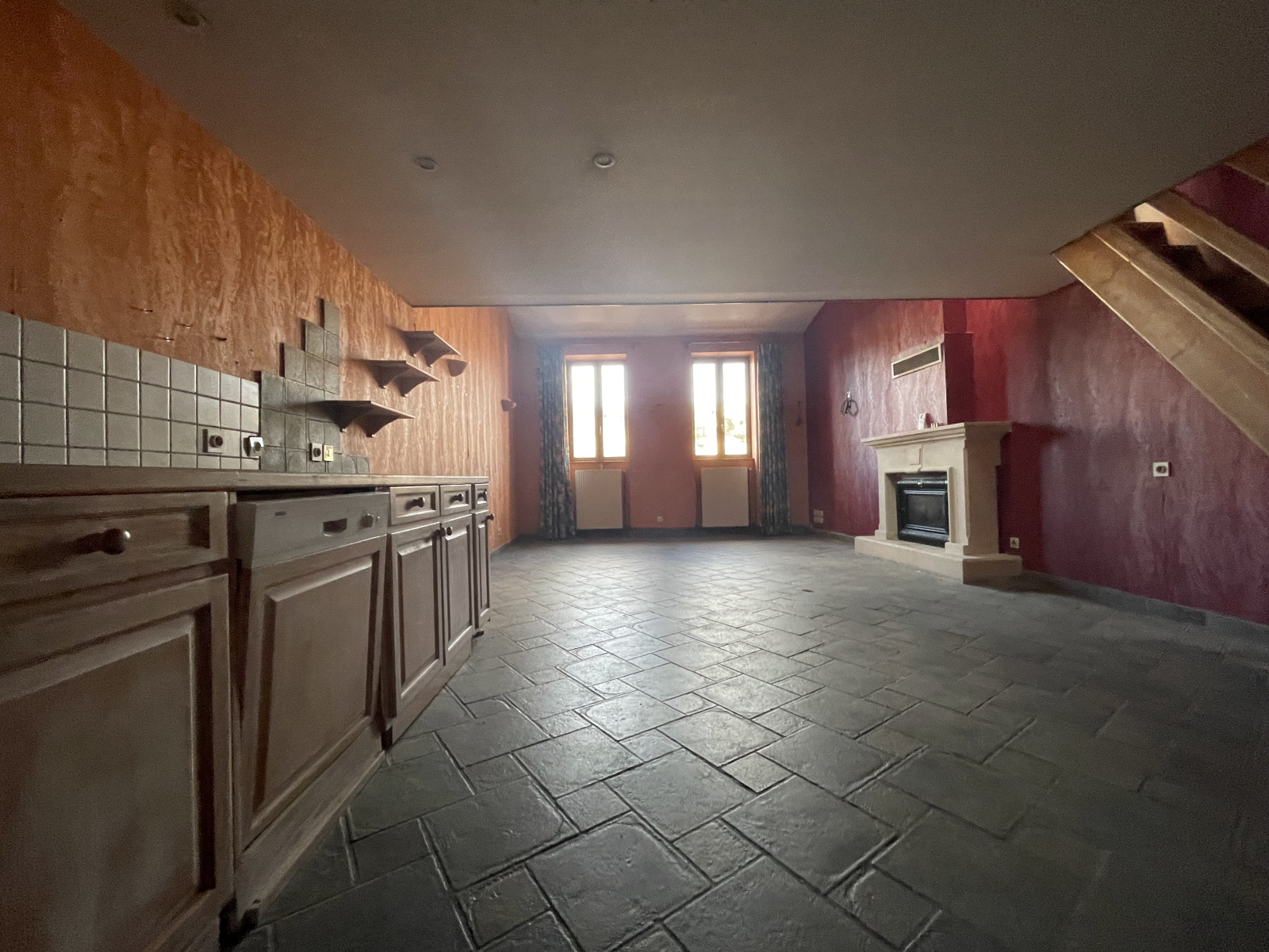 Le premier étage est composé d'une pièce de vie avec sa belle cheminée en pierres,d'une cuisine,d'une salle d'eau avec douche italienne, déjà rénovée et d'un WC séparé.